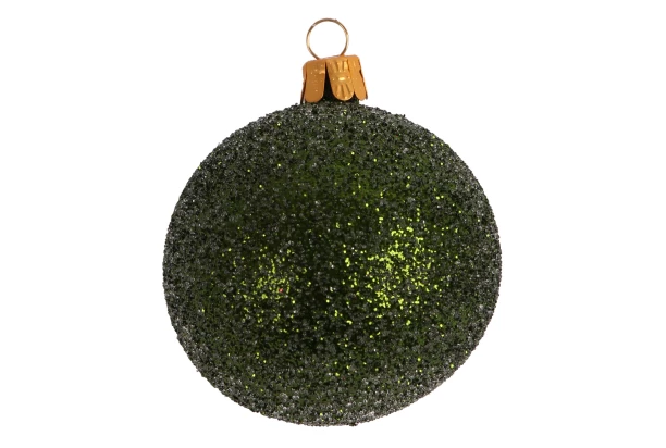 Zelená vianočná guľa s priemerom 7 cm je ozdobená trblietavými gorálkami, ktoré dodávajú ozdobe pútavý, ale napriek tomu decentný vzhľad. Ideálny dekoratívny doplnok pre Váš vianočný stromček.