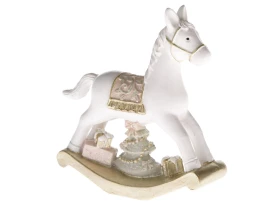 Vianočná dekorácia v tvare farebného hojdacieho koníka s darčekmi vyčaruje magickú vianočnú atmosféru, či už bude stáť na poličke alebo na stole.