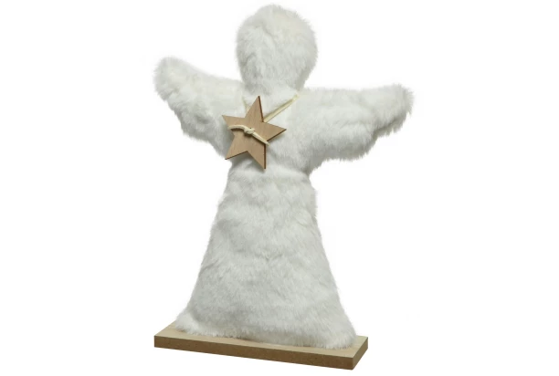 Plyšový anjel s drevenou hviezdičkou v jednoduchom bielom prevedení doladí vianočnú atmosféru každého domova. Dekoratívnu figúrku je možné vďaka podstavcu ľahko postaviť na stôl alebo poličku.