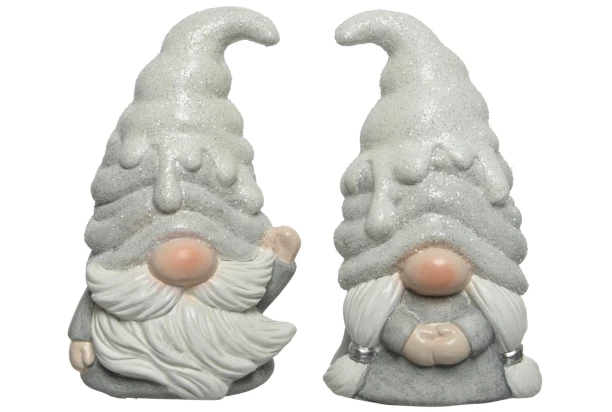 Roztomilý vianočný škriatok v striebornej farbe s trblietavým klobúkom v tvare zasneženého stromčeka vnesie do Vášho domova radosť a pohodu počas sviatočných dní. Či už trpaslík bude stáť na stole, poličke, parapete alebo krbe, krásne dotvorí vianočnú aj zimnú atmosféru. Dodávané v 2 rôznych variantoch.