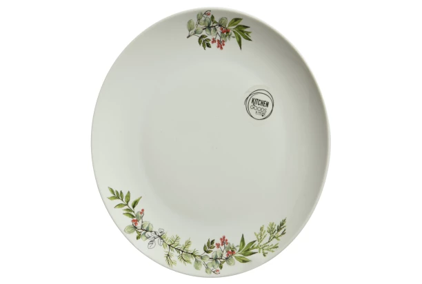 Plytký jedálenský tanier s vianočným motívom v podobe vetvičky dokonale ozdobí jedálenský stôl počas sviatkov-Vianoc. Ideálna na štedrovečernú večeru. Priemer 26 cm.