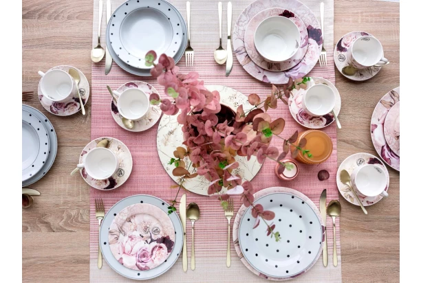 Plytký jedálenský tanier s motívom pôvabných ruží dokonale ozdobí jedálenský stôl. Ideálna na obedy aj večere. Priemer 27 cm.