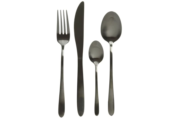 Štýlová sada príborov (16 ks) v čiernej farbe s matným povrchom Vám umožní vytvoriť neobvyklé stolovanie. Moderný ušľachtilý dizajn skvele doplní každý riad a vytvorí jedinečné prostredie pre každodenné používanie aj špeciálne príležitosti.