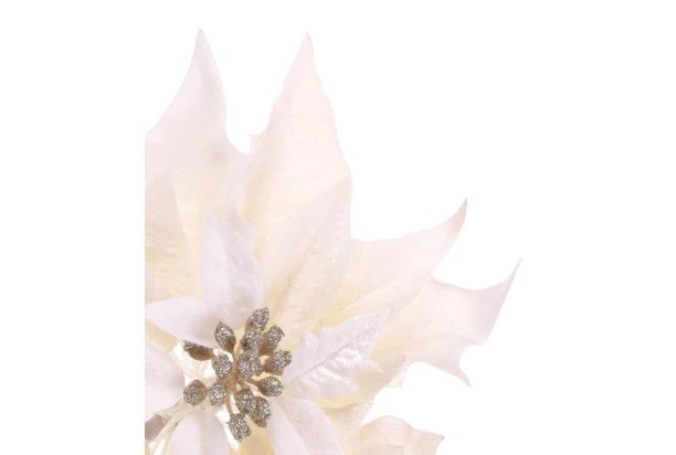 Umelá kvetina Vianočná ruža 32 cm, biela glitrovaná