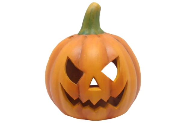 Jesenná dekorácia tekvice je určená ako svietnik na čajovú sviečku, ktorá je vyrobená z terakoty v oranžovej farbe. Vydlabaná tekvica okrúhleho tvaru má rozmer 16×18 cm.