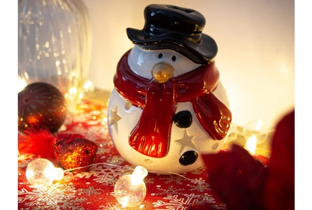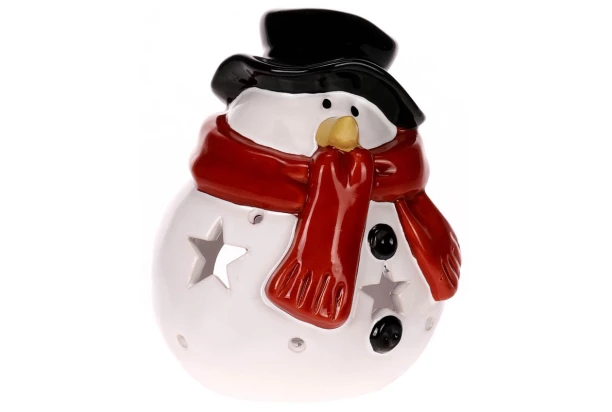 Keramický snehuliak je nielen skvelou dekoráciou, ale je možné ho tiež využiť ako svietnik na čajovú sviečku. Plápolajúci plamienok cez otvory v tvare hviezdičiek navodí tú správnu vianočnú atmosféru. Výška 14 cm.