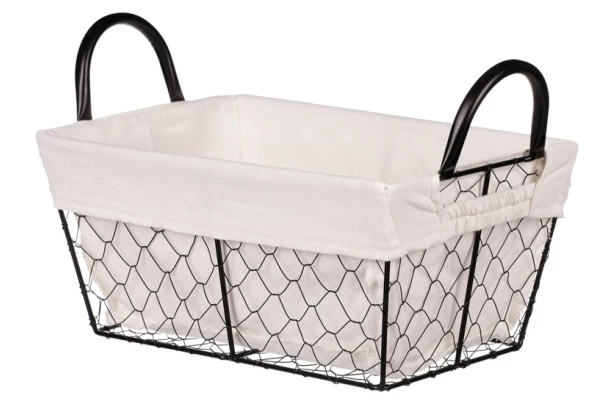 Praktický a štýlový kovový košík v čiernom prevedení s úchytmi je vybavený bielou látkou. Možno využiť na uloženie rôznych vecí a udržať si tak v domácnosti poriadok. Kôš o veľkosti 30×14 cm nájde uplatnenie v obývačke, kúpeľni, šatni, spálni, kuchyni aj v detskej izbe.