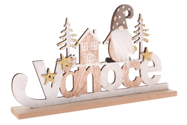 Dekoratívny drevený nápis Vianoce v prírodnom prevedení sa skvele hodí na vianočnú výzdobu. Vďaka stabilnému podstavcu je možné dekoráciu ľahko postaviť na poličku, komodu alebo stôl.