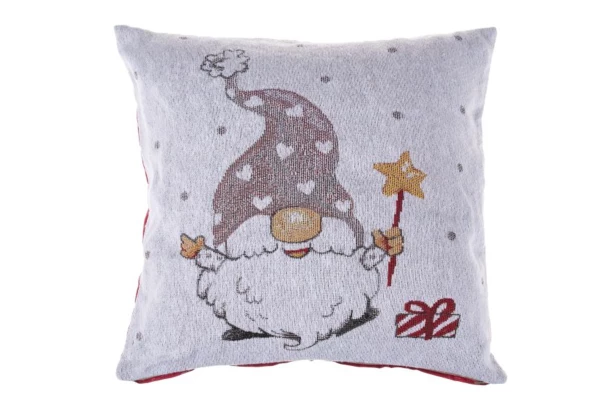 Dekoračná obliečka na vankúš s rozmerom 40×40 cm s vianočným motívom veselého škriatka s darčekom v šedo-bielom prevedení ľahko oživí a premení vzhľad Vašej pohovky či postele. Oblečte vankúš počas Vianoc a vykúzlite dokonalú sviatočnú atmosféru u Vás doma.