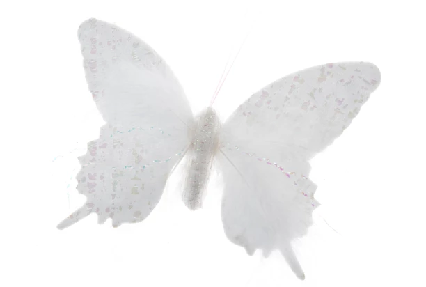 Závesná dekorácia v tvare motýľa o veľkosti 16 cm je vyrobená z bielej látky a ozdobí nielen vianočný stromček počas Vianoc, ale nájde uplatnenie aj počas celého roka.