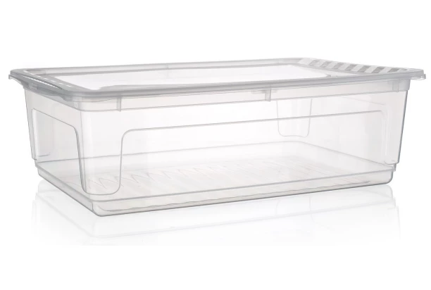 Plastový multifunkčný úložný box s objemom 30 litrov v priehľadnom prevedení sa hodí na skladovanie oblečenia, doplnkov a ďalších drobností. Box je vybavený unikátnym systémom AIR control, ktorý umožnuje prúdenie vzduchu, alebo uzavretie boxu v závislosti od otočenia veka. Vďaka svojmu jednoduchému vzhľadu ľahko zapadne do každej domácnosti.