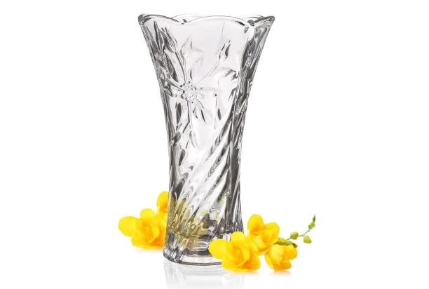 Dizajnová sklenená váza o výške 23 cm ozdobí každý interiér. Do vázy je možné umiestniť čerstvé alebo umelé kvety a vytvoriť si tak štýlový stolný aranžmán.