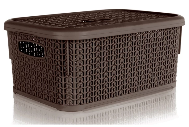 Úložný plastový košík s vekom s objemom 6 litrov v ratanovom hnedom prevedení sa stane praktickým bytovým doplnkom, do ktorého je možné ukladať rôzne drobnosti.