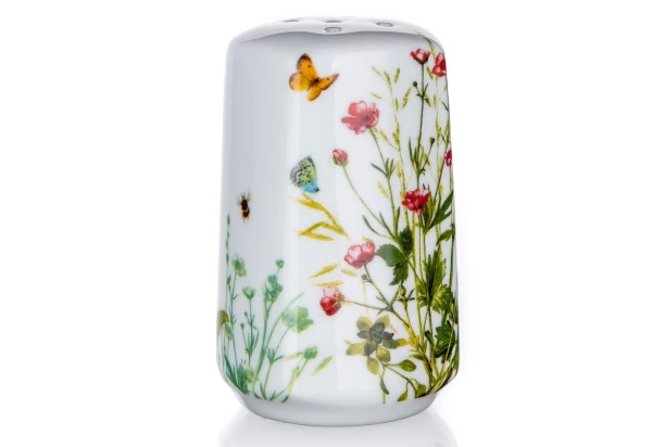 Soľnička s krásnym kvetinovým vzorom o výške 7,5 cm sa hodí na dochucovanie pokrmov pri všedných i sviatočných príležitostiach.