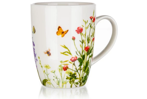 Hrnček s krásnym kvetinovým vzorom s objemom 300 ml sa hodí na podávanie studených aj teplých nápojov pri všedných i sviatočných príležitostiach.