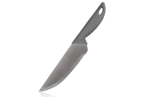 Kuchársky nôž s dĺžkou ostrie 17 cm má plastovú rukoväť v šedej farbe a je nepostrádateľným pomocníkom v každej kuchyni.