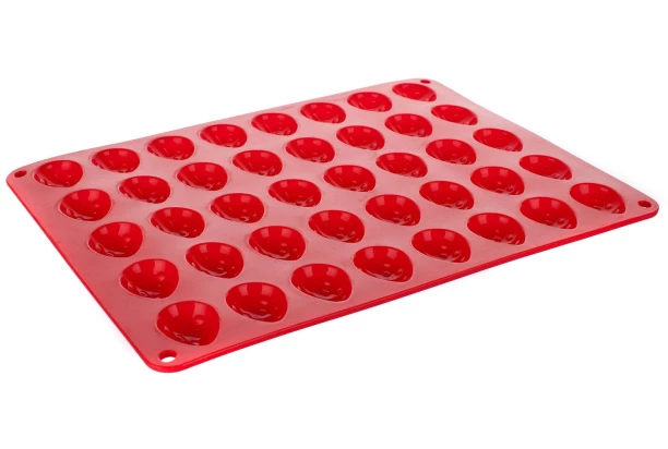 Červená silikónová forma na pečenie na malé orechy, ktoré sa neprilepia a dajú sa ľahko vyklopiť. Hromadná forma Vám uľahčí prácu, kedy ľahko a rýchlo vytvoríte a upečiete naraz 40 úplne rovnakých kusov obľúbených vianočných cukroviniek. Rozmer 34×1, 4×26 cm.