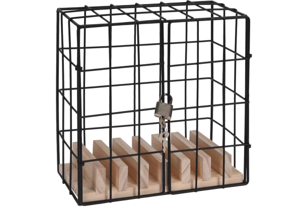 Už žiadne rozptyľovanie mobilným telefónom! Drevený stojan na 6 telefónov uzavretý do kovovej klietky s visiacim zámkom v čiernej farbe obmedzí prístup k smartfónom, vďaka čomu si budete môcť užiť akciu s priateľmi na 100%. Váš telefón zostane na bezpečnom mieste, zatiaľ čo sa budete venovať danej úlohe či činnosti.