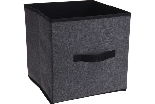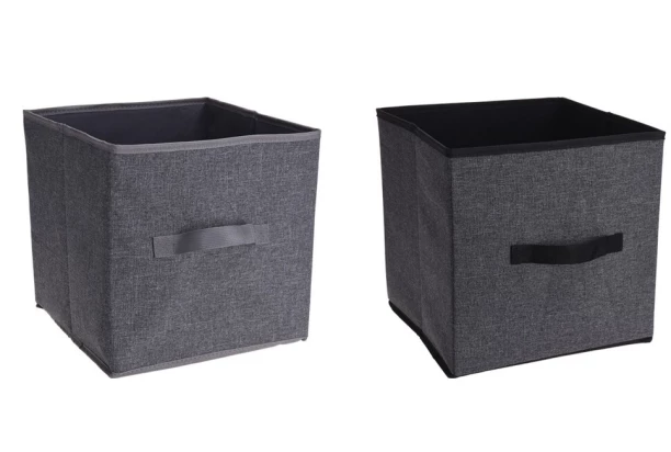 Úložný box na udržanie poriadku v domácnosti je vyrobený zo silného plátna v tmavo šedej alebo svetlo šedej farbe (dodávané podľa aktuálnej skladovej zásoby). Box má na prednej strane praktické ucho pre ľahšiu manipuláciu. Rozmer 30×30 cm.