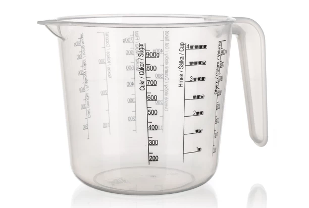 Plastová kuchynská odmerka s objemom 1 liter Vám uľahčí prípravu jedál a zaisťuje presnosť pri dodržiavaní receptov. Odmerka s výlevkou je opatrená prehľadnou stupnicou, vďaka ktorej ľahko odmeriate sypké aj tekuté potraviny.