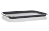 Praktická servírovacia tácka z čierneho plastu je vhodná na podávanie občerstvenia, prenášania potravín a nápojov. Rozmer 43×31 cm.