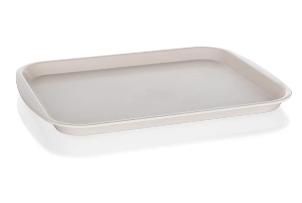 Praktická servírovacia tácka z plastu vo farbe slonová kosť je vhodná na podávanie občerstvenia, prenášania potravín a nápojov. Rozmer 43×31 cm.