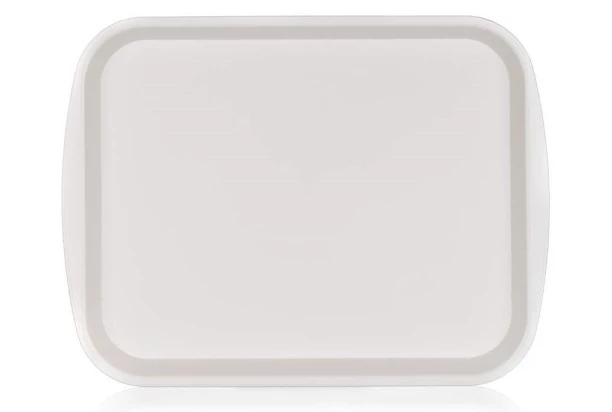 Praktická servírovacia tácka z plastu vo farbe slonová kosť je vhodná na podávanie občerstvenia, prenášania potravín a nápojov. Rozmer 35×26 cm.
