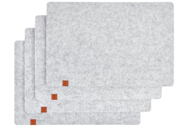4-dielna sada prestierania v svetlo šedej farbe dodá jedálnemu stolu moderný a štýlový vzhľad. Filcové prestieranie je nielen estetické, ale aj praktické, pretože chráni váš stôl pred poškriabaním a škvrnami.