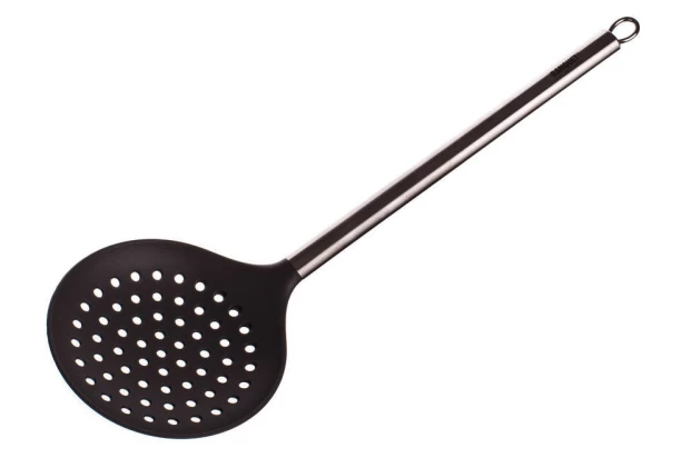 Praktická kuchynská penovačka z nylonu v čiernej farbe je nenahraditeľná v každej kuchyni. Spoľahlivá príprava teplých jedál a pohodlné používanie vďaka dlhej rukoväti z nerezovej ocele. Dĺžka 34,5 cm.
