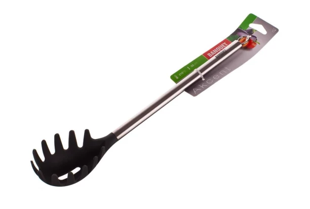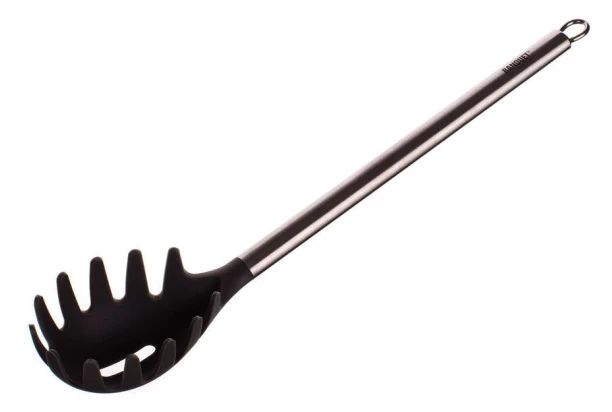 Praktická kuchynská naberačka na cestoviny je vyrobená z nylonu v čiernej farbe. Jednoduchá príprava a servírovanie špaget, pohodlné držanie vďaka dlhej rukoväti z nerezovej ocele. Dĺžka 32 cm.