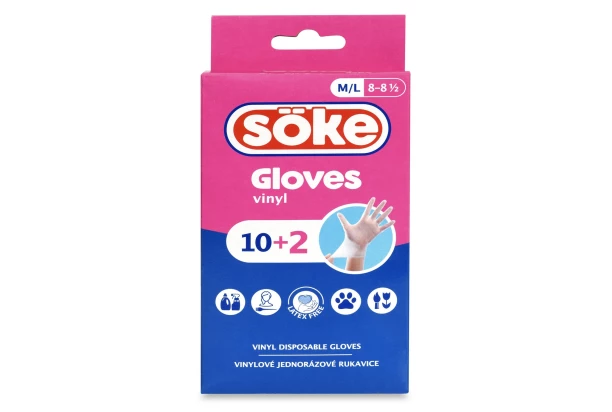 Jednorazové vinylové rukavice Söke 10+2, veľ. M/L
