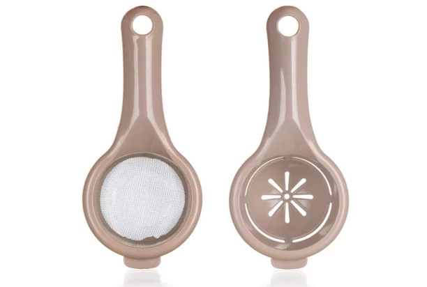 Kuchynská sada 2v1 obsahuje praktických pomocníkov do kuchyne, minisitko a oddeľovač žĺtkov. Vďaka praktickým zarážkam sa dajú umiestniť na misku. Farba hnedá.
