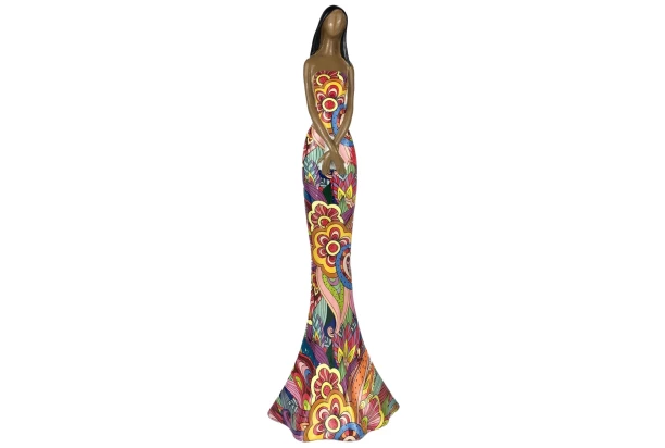 Krásna dekoračná soška v podobe ženy v šatách vo výraznom farebnom prevedení urobí radosť Vám aj Vašim blízkym. Kreatívna figúrka je dokonalou dekoráciou, ktorá dodá originálny nádych každému kútu Vášho domova. Výška 36 cm.