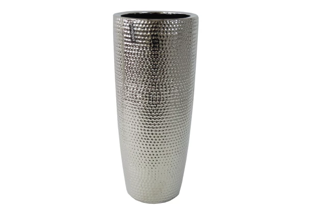 Moderná strieborná váza s tepaným vzhľadom dodá Vašej domácnosti štýl a nádych luxusu. Váza zaujme svojim elegantným tvarom a spoločne s kvetmi či dekoráciami sa stane skutočným pútačom. Výška 49 cm.