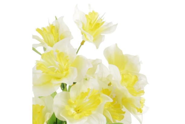 Umelá kvetina narcisy vo svetlo žltej farbe skvele doplní Váš súčasný kvetinový aranžmán. Narcisky vo váze budú vyzerať krásne po celý rok. Výška 30 cm.
