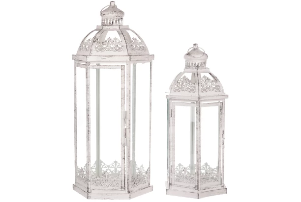 Sada 2 kovových lampášov v bielej farbe v romantickom štýle vykúzli vo Vašom domove tú správnu atmosféru.