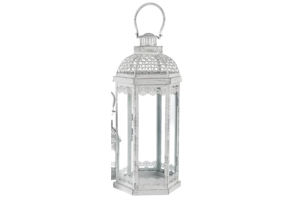 Kovový lampáš v bielej farbe v romantickom štýle vykúzli vo vašom domove tú správnu atmosféru. Výška 58 cm.