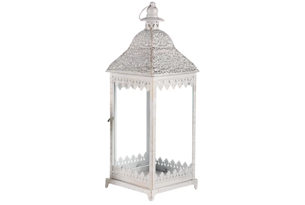 Kovový lampáš v bielej farbe v romantickom štýle vykúzli vo vašom domove tú správnu atmosféru. Výška 55 cm.