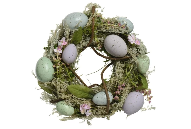 Veľkonočný veniec z vajíčok vytvorí tú správnu sviatočnú atmosféru. Tento okrúhly veniec s priemerom 23 cm skvele doplní výzdobu na Veľkú noc.
