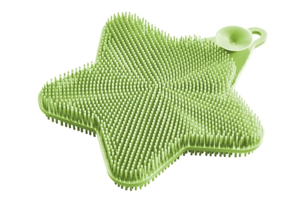 Praktická silikónová čistiaca hubka v tvare zelenej hviezdy je ideálnou pomôckou do každej kuchyne. Vďaka jemným štetinkám šetrne, ale účinne odstráni nečistoty z citlivých povrchov i riadu bez toho, aby ich poškriabala. Možno tiež použiť ako umývaciu kefu na ovocie a zeleninu.