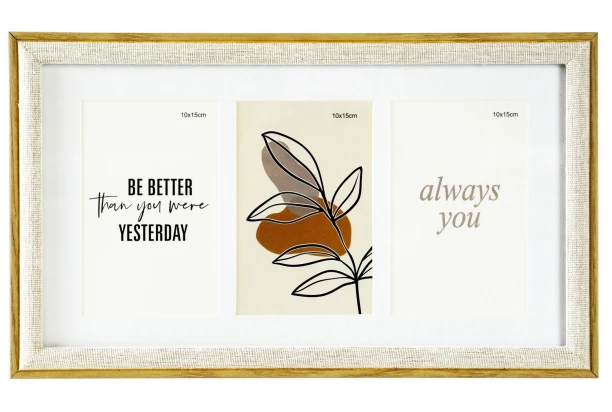 Drevený fotorámik na 3 fotografie vo formáte 10×15 cm skvelo doladí každú stenu. Farba hnedo-krémová.