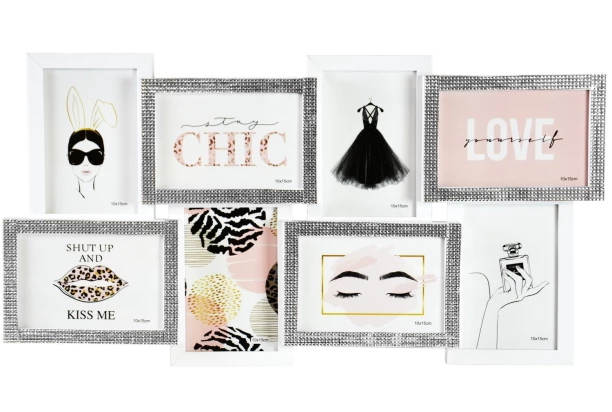 Multirám pro 8 ks foto 10x15 cm, biela/strieborná