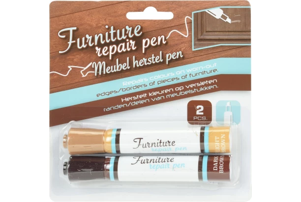 Pomocou korektorov sami ľahko opravíte škrabance, zmenu farby, odrenia a ďalšie drobné poškodenie na povrchu vášho dreveného nábytku. Balenie obsahuje 2 opravné perá – svetlo hnedé a tmavo hnedé.