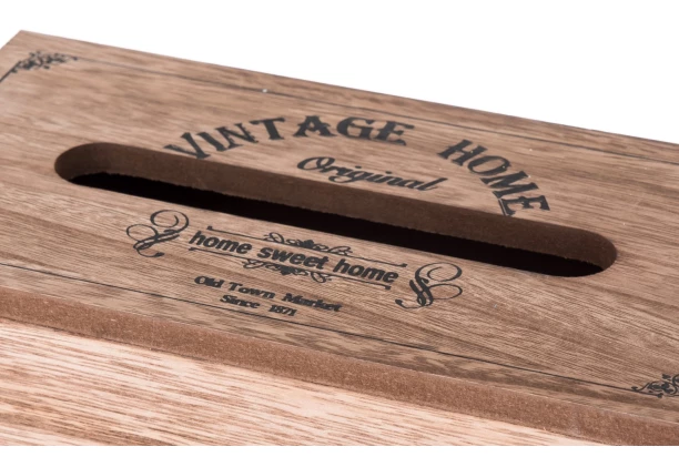 Elegantný box Vintage Home je nielen skvelým dizajnovým prvkom do domácnosti, ale zároveň je aj praktickým pomocníkom, vďaka ktorému budete mať papierové vreckovky vždy po ruke. Krabička vo vintage štýle je vyrobená z dreva v prírodnom prevedení s čiernymi dekoratívnymi nápismi. Rozmer 25×8×14 cm.