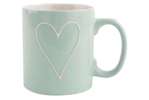 Keramický hrnček v bielo-zelenom prevedení s jednoduchým motívom srdca má objem 600 ml a hodí sa na studené aj teplé nápoje.