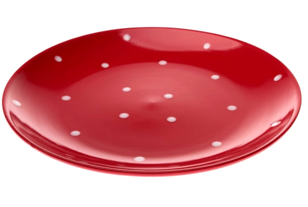 Plytký tanier 26,5 cm, červený s bodkami
