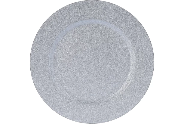 Dekoratívny trblietavý strieborný tanier z plastu s priemerom 33 cm krásne ozdobí Váš domov, do ktorého vnesie sviatočnú atmosféru.