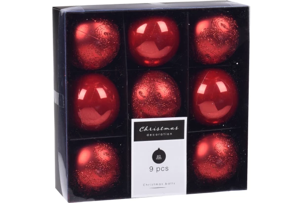 Praktická a hlavne nerozbitná 9-dielna sada plastových vianočných červených gulí, ktorá rozžiari každý vianočný stromček.