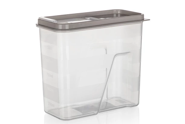 Plastová dóza s objemom 1,5 l s dávkovacím uzáverom v latte farbe je praktickým pomocníkom na skladovanie sypkých potravín, ako je napr. múka, cukor, soľ, cestoviny, strukoviny a pod. Transparentné prevedenie zaistí prehľadnosť aktuálnych zásob. Vybavené meracou ryskou s odstupom 1500 ml.