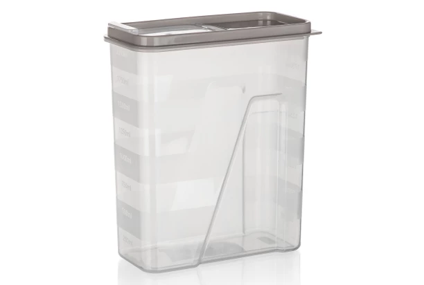 Plastová dóza s objemom 2 l s dávkovacím uzáverom v latte farbe je praktickým pomocníkom na skladovanie sypkých potravín, ako je napr. múka, cukor, soľ, cestoviny, strukoviny a pod. Transparentné prevedenie zaistí prehľadnosť aktuálnych zásob. Vybavené meracou ryskou s odstupom 2000 ml.